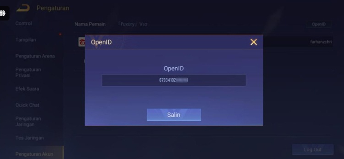 Untuk menemukan Open ID Anda, klik ikon Pengaturan di sudut kanan atas layar dan buka tab 'Umum'. Scroll ke bagian bawah, lalu klik pada bagian Open ID. Pastikan Akun Anda di Bind ke Garena.